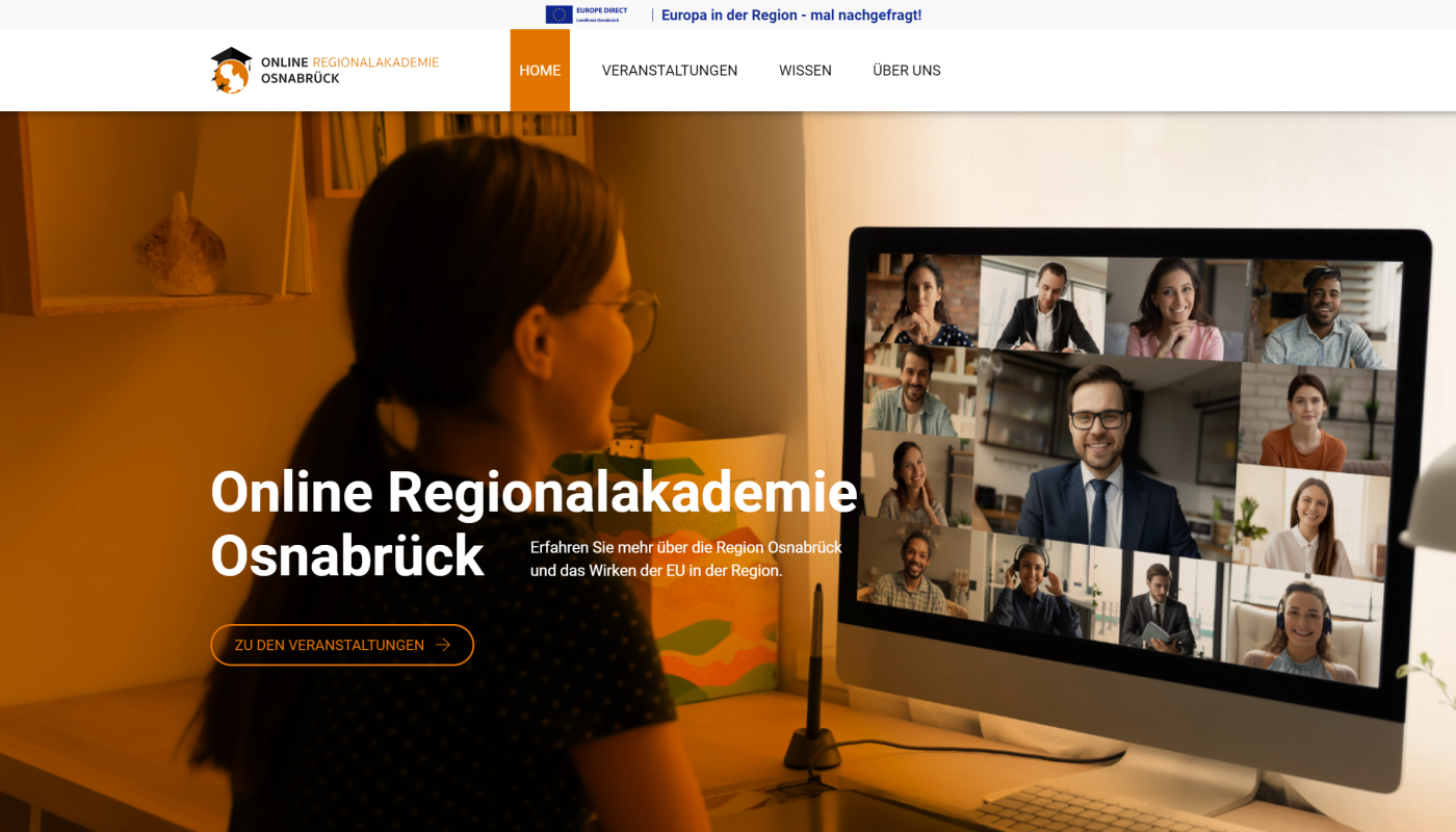 Schon heute über das Morgen reden: Das will die Online-Regionalakademie Osnabrück. Gegründet am 21. September 2021 durch den Kreisverband Stadt und Land e.V. der Europa Union informiert die Akademie Interessierte online über Zukunftsthemen aus der Region – und lädt zum virtuellen Austausch ein.
