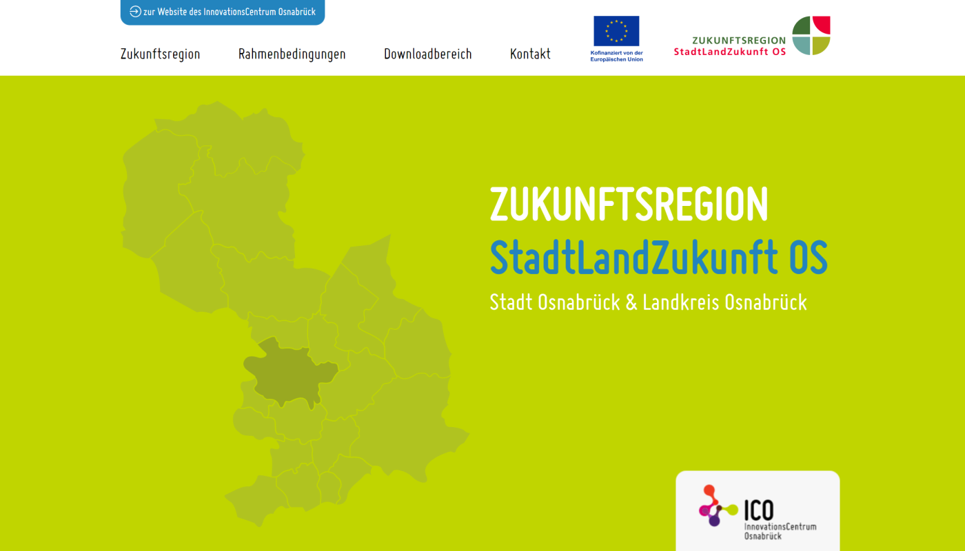 Mit dem Regionalentwicklungsprogramm „Zukunftsregionen in Niedersachsen“ ermutigen das Land Niedersachsen und die NBank Landkreise und kreisfreie Städte, miteinander zu kooperieren und Projekte umzusetzen, die die Region zukunftsstark und widerstandsfähig aufstellen. „StadtLandZukunft OS“ ist eine von 14 Regionen in Niedersachsen, die an dem Programm teilnimmt. Dabei konzentriert sich die Region auf zwei Handlungsfelder: „Regionale Innovationsfähigkeit“ und „CO2-arme Gesellschaft und Kreislaufwirtschaft“. Unter anderem sollen Wissenschaft und Wirtschaft besser vernetzt und innovative Projekt- und Unternehmensideen vorangetrieben werden. Die CO2-Reduktion und Ressourceneffizienz soll weiter forciert werden.